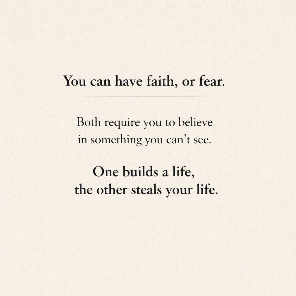Fear and faith have something in common. Both ask you to believe in what you cannot see. Fear imagines loss, danger, and failure before they ever arrive. Faith imagines God already present, already working, already faithful.