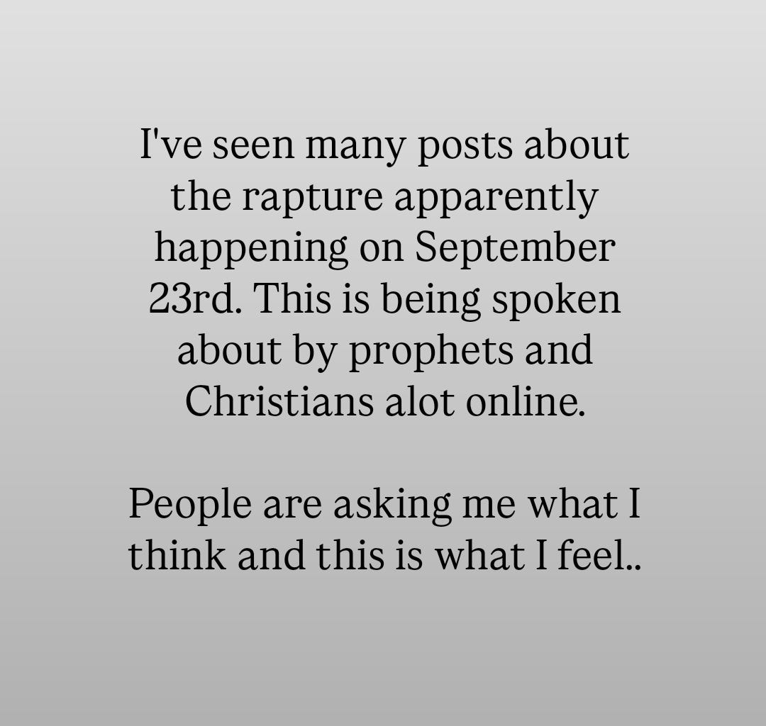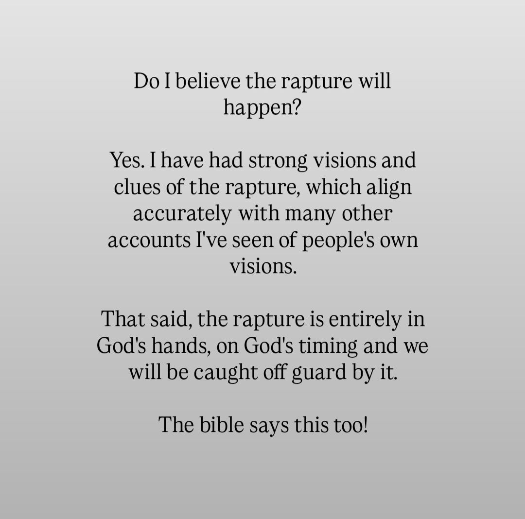 I always have questions about the Rapture and new ones come into my head every time the subject is brought up 😂 For instance, those who have repented, will we get scooped to safety before it happens? Or will it happen anyway wherever we are, but those who repented will be unaffected? And we just get to see all the 'baddies' suffering while we're in a protective bubble?