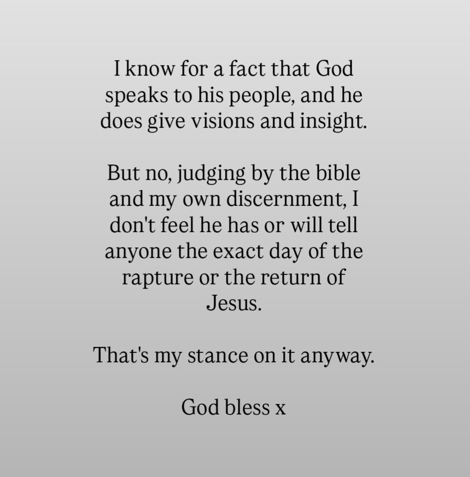 It will happen at his will , not our belief that s how I feel, with you on this Jess 🙏😘